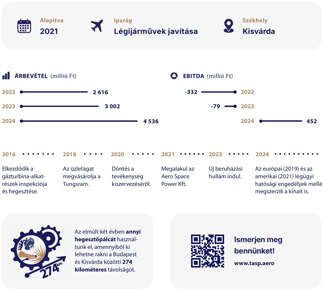 A kisvárdai székhelyű Aero Space Power Kft. olyan iparágban lett globális szereplő, amelyet kevesen ismernek, mégis kiemelkedően fontos a biztonságos légiközlekedés szempontjából. A cég elsődleges fókuszterülete a repülőgéphajtómű-alkatrészek precíziós nagyjavítása, de foglalkoznak gázturbinákkal is.