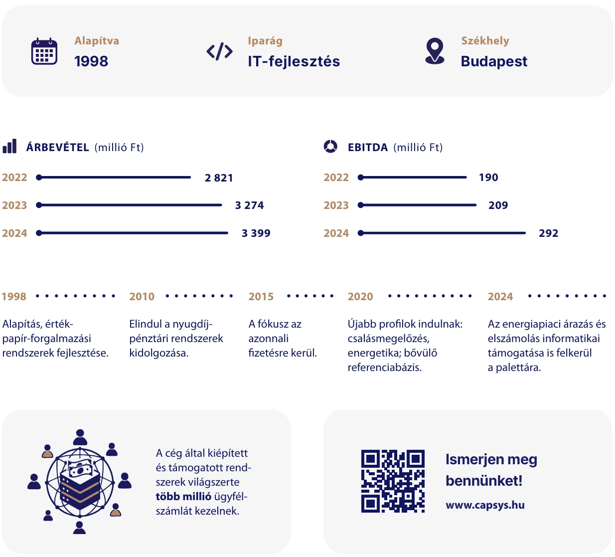 A Capsys Informatikai Kft. a banki és tőkepiaci szoftvermegoldások egyik meghatározó hazai szállítója, ahol a legfőbb érték az ember. A magyar tulajdonú, független szoftverfejlesztő és tanácsadó vállalkozás pénzügyi intézmények – bankok, biztosítók, nyugdíjpénztárak, befektetési szolgáltatók – számára kínál testre szabott informatikai megoldásokat, és immár az energiapiacon is megvetette a lábát.