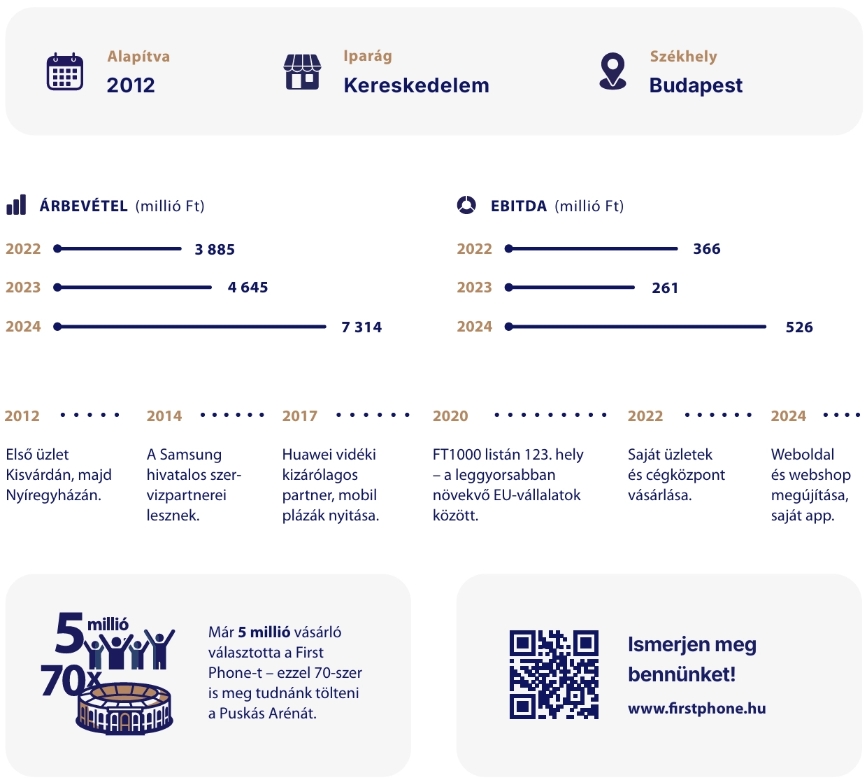 A cég 2014-ben a Samsung hivatalos szervizpartnere, majd a Huawei kizárólagos vidéki partnere lett. Utóbbi márka értékesítése azonban 2019-ben, az Egyesült Államok szankciói miatt, egyik napról a másikra megállt, amit a pandémia tovább nehezített. A család ekkor stratégiai előrelépéssel reagált a nehézségekre: üzlethelyiségeket vásároltak, erősítették portfóliójukat és elindították a digitalizációt. Így született meg a FirstApp, amely mára százötvenezres aktív bázissal rendelkező vásárlási és ügyfélkapcsolati platform, hűségprogrammal kiegészülve.