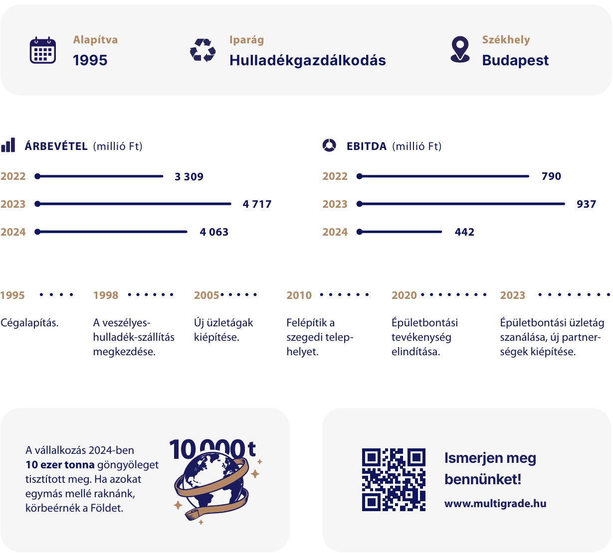 A szegedi gyökerekkel rendelkező Multigrade Környezetvédelmi Kft. története három évtizedre nyúlik vissza. Az 1995-ben alapított cég kezdetben kenőanyagokkal kereskedett, de hamar felismerték, hogy az ipari és mezőgazdasági veszélyes hulladékok szakszerű elszállításában és kezelésében komoly piaci potenciál rejlik, s Jéga-Szabó Ferenc tulajdonos-ügyvezető élt is a kínálkozó lehetőséggel.