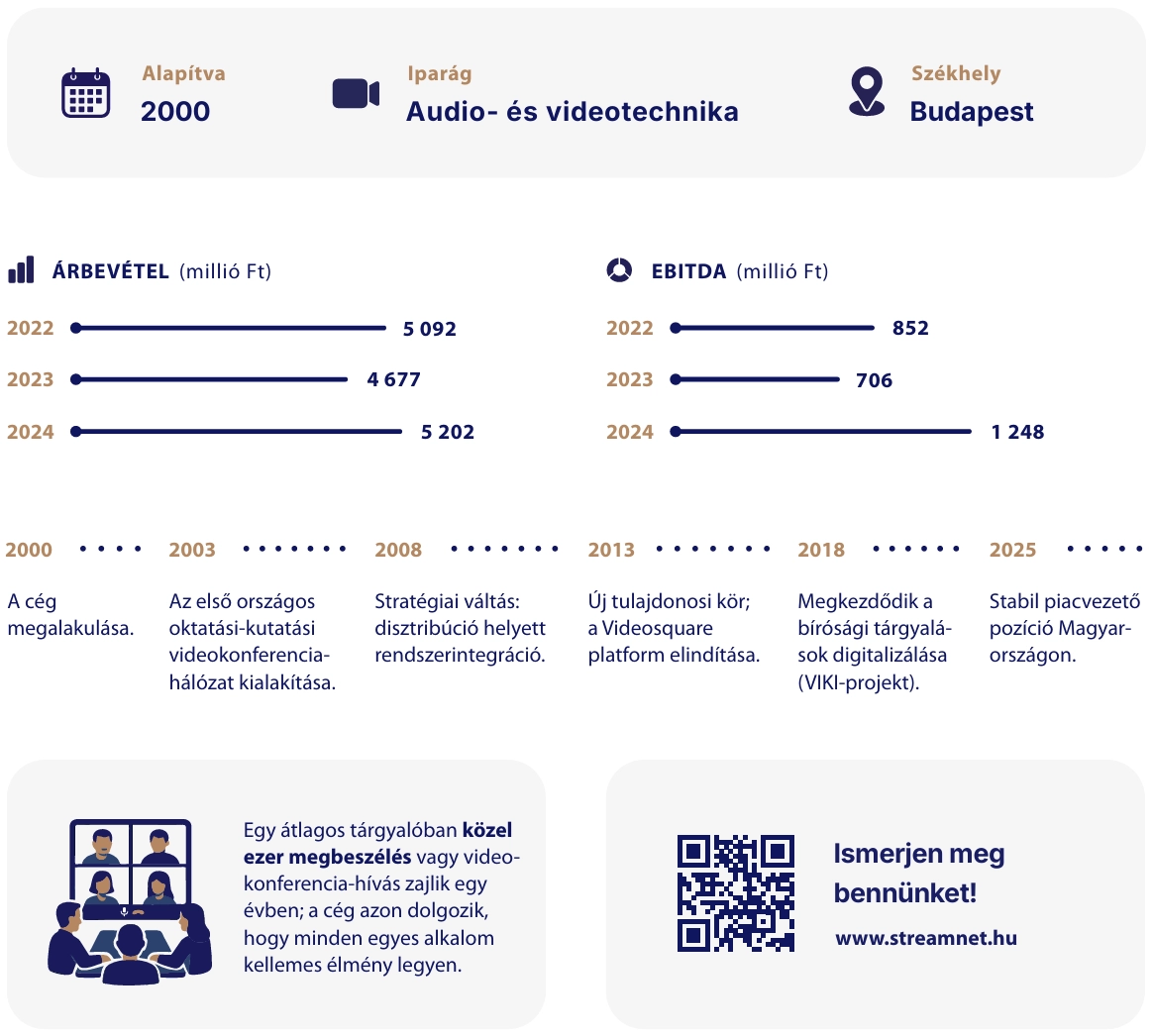 A 2000-ben alapított Streamnet Zrt. ma már nemcsak videokonferencia- disztribútor, hanem komplett rendszerintegrátor is, ezáltal Magyarország egyik meghatározó hang- és képtechnikai (AV) szolgáltatójának számít egy dinamikusan változó iparágban.