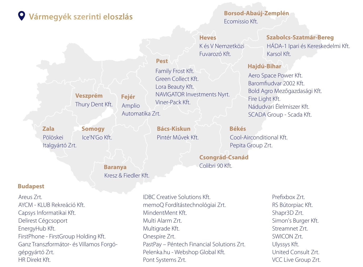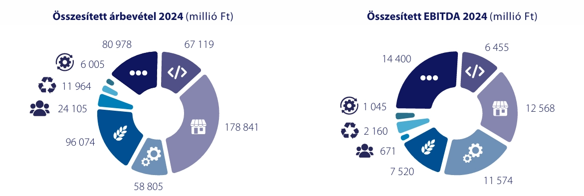 A legnagyobb árbevételt elérő három vállalat 2024-ben a Delirest Cégcsoport (94,8 milliárd forint), a Baromfiudvar 2002 Kft. (53,7 milliárd forint) és a Ganz Transzformátor- és Villamos Forgógépgyártó Zrt. (45,4 milliárd forint) voltak; ezek együttesen a teljes árbevétel 37,1 százalékát adták. Az adott évben a legmagasabb EBITDA-értéket a Delirest Cégcsoport érte el 9,6 milliárd forinttal. A vizsgált időszakban a legnagyobb éves összetett növekedési rátát (CAGR) a Simon’s Burger Kft. mutatta: árbevétele 369 százalékkal, EBITDA-ja 317 százalékkal növekedett. EBITDA-marzs alapján az Ice’N’Go Kft. (60%) és az EnergyHub Kft. (42%) szerepelt a legmagasabb értékekkel.